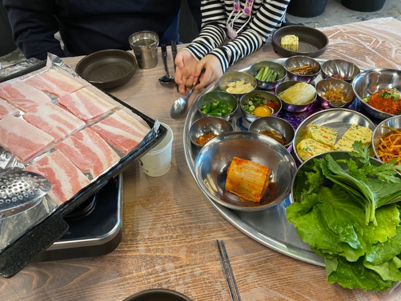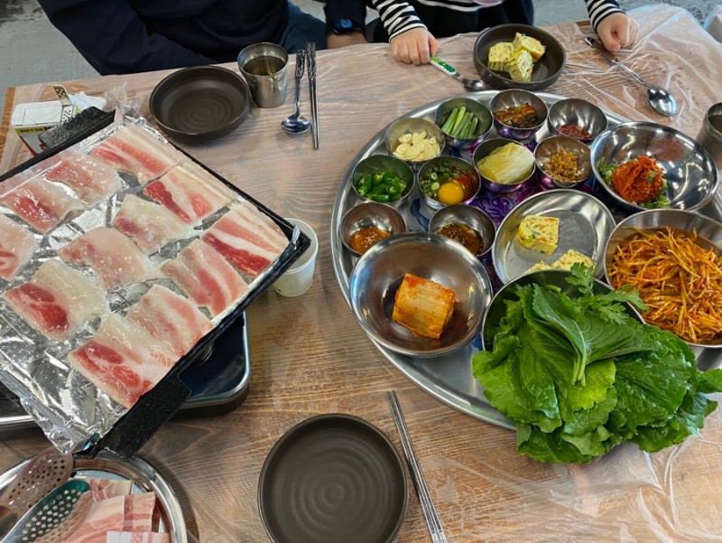 특히 저 계란말이. 파채도 예술이고, 무엇하나 빠질게 없는 구성이다. 냉삼도 급랭한 국산 한돈 삼겹살이고. 고기 질이 좋아서 맛있다. 고기집에서 사실 고기가 제일 중요하지. 인정! 압구점에 다녀 온뒤 또 생각났지만, 그렇다고 온가족 데리고 압구정에 갈수는 없고, 검색해보니 광교에 잠수교집이 있다. 여기는 갈만하지~ 큰 아이가 태권도 체험학습 간 날, 둘째만 데리고 셋이 광교 나들이를 갔다. 나들이라 쓰고, 사실 그냥 잠수교집에 간 것.