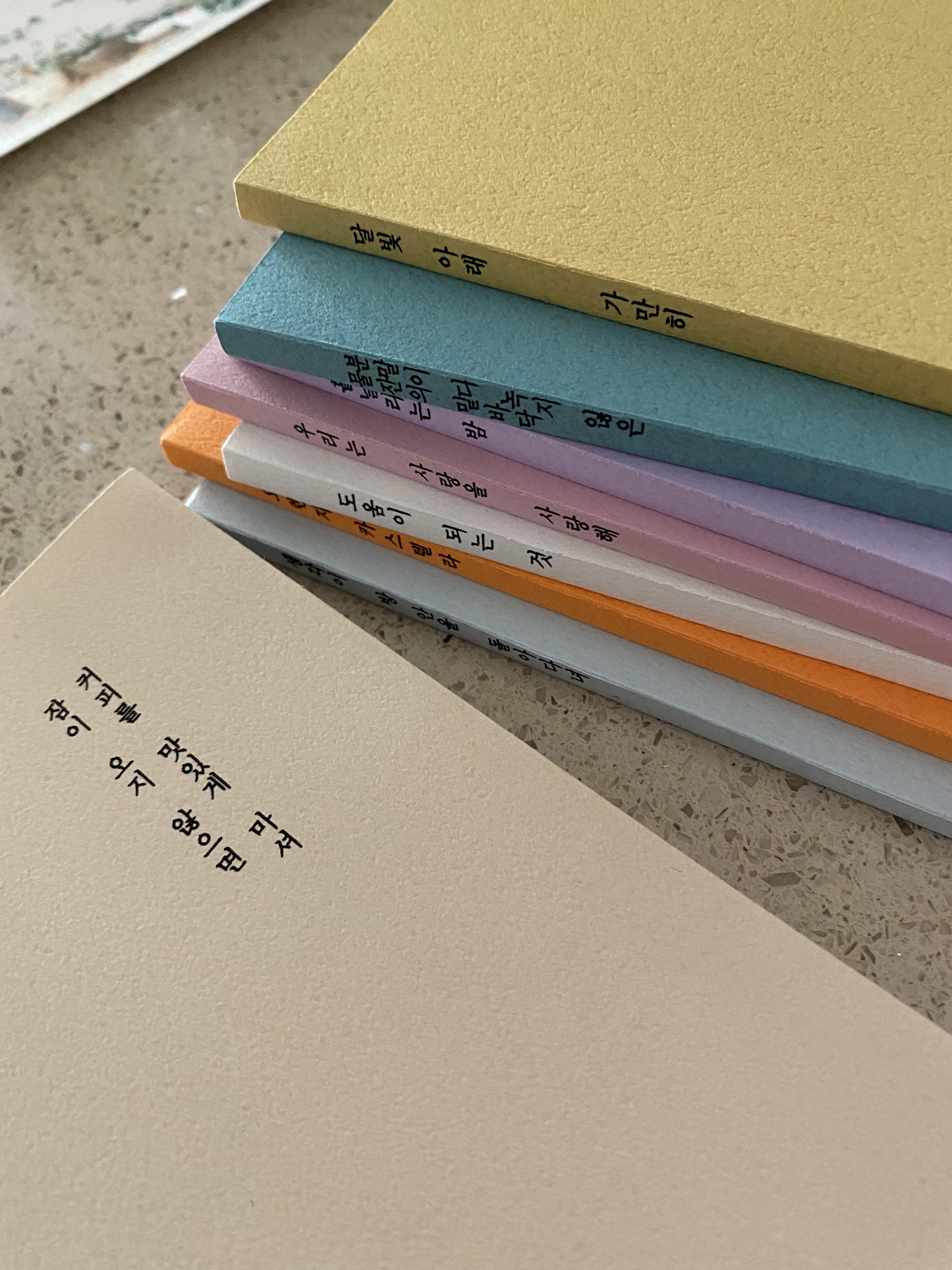 직접 집에서 제작한 책이라고 합니다. 손바닥만큼 작은 책입니다. 작은만큼 가격도 부담스럽지 않았어요.