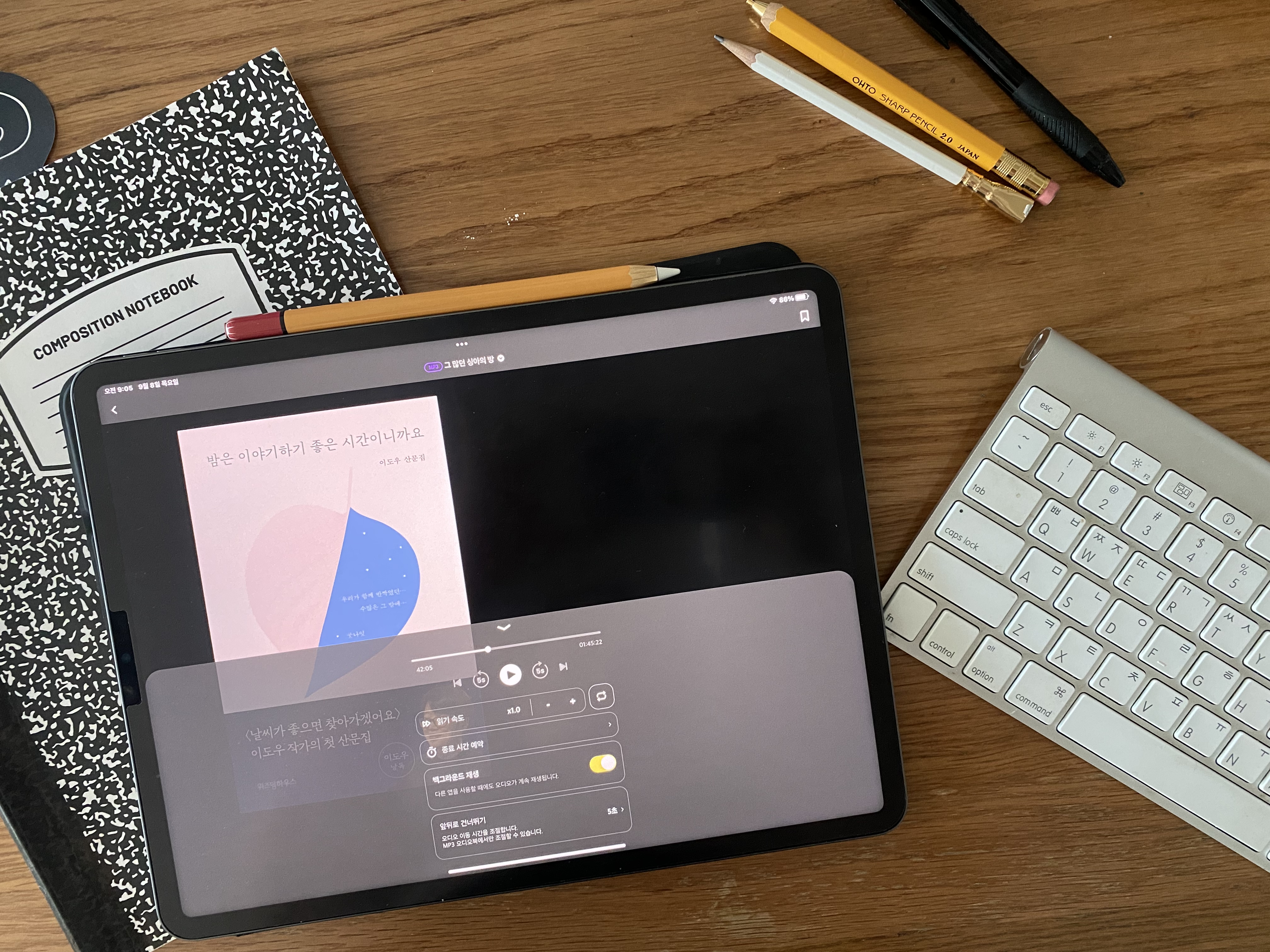 2시간 40분이면 이 책을 다 들을 수 있어요. 그런데 원래 글로 적힌 책은 380쪽이 넘는 거예요. 세상에. 다시 확인해보니, 발췌하여 읽은 책이었어요. 어쩌면 작가가 그중 다시 엄선하여 읽은 이야기들일 것이다. 그래서 충분할지도 모른다 생각했어요.