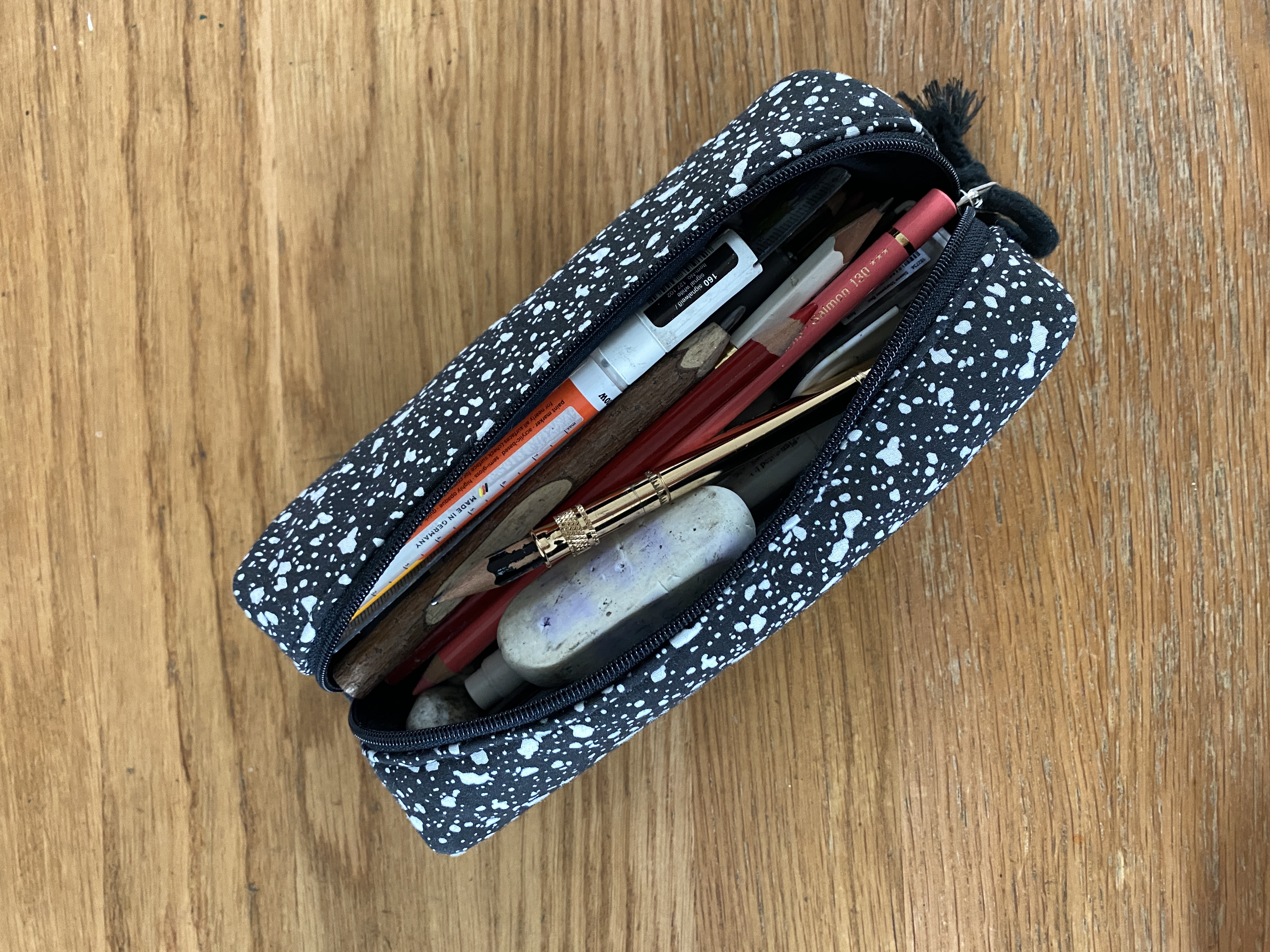 어떤 필통을 사던 그 필통을 꽉 채우게 된다. 색연필, 연필, 펜, 지우개, 흰색마카, 물감, 휴대용 붓, 스탬프...=_= 다 안들어가서 보조 필통도 하나 들고 다닌다. 19cm * 6cm * 7cm 크기로, 파스텔 핑크, 화이트, 블랙이 있는데 나는 블랙으로 선택했다.