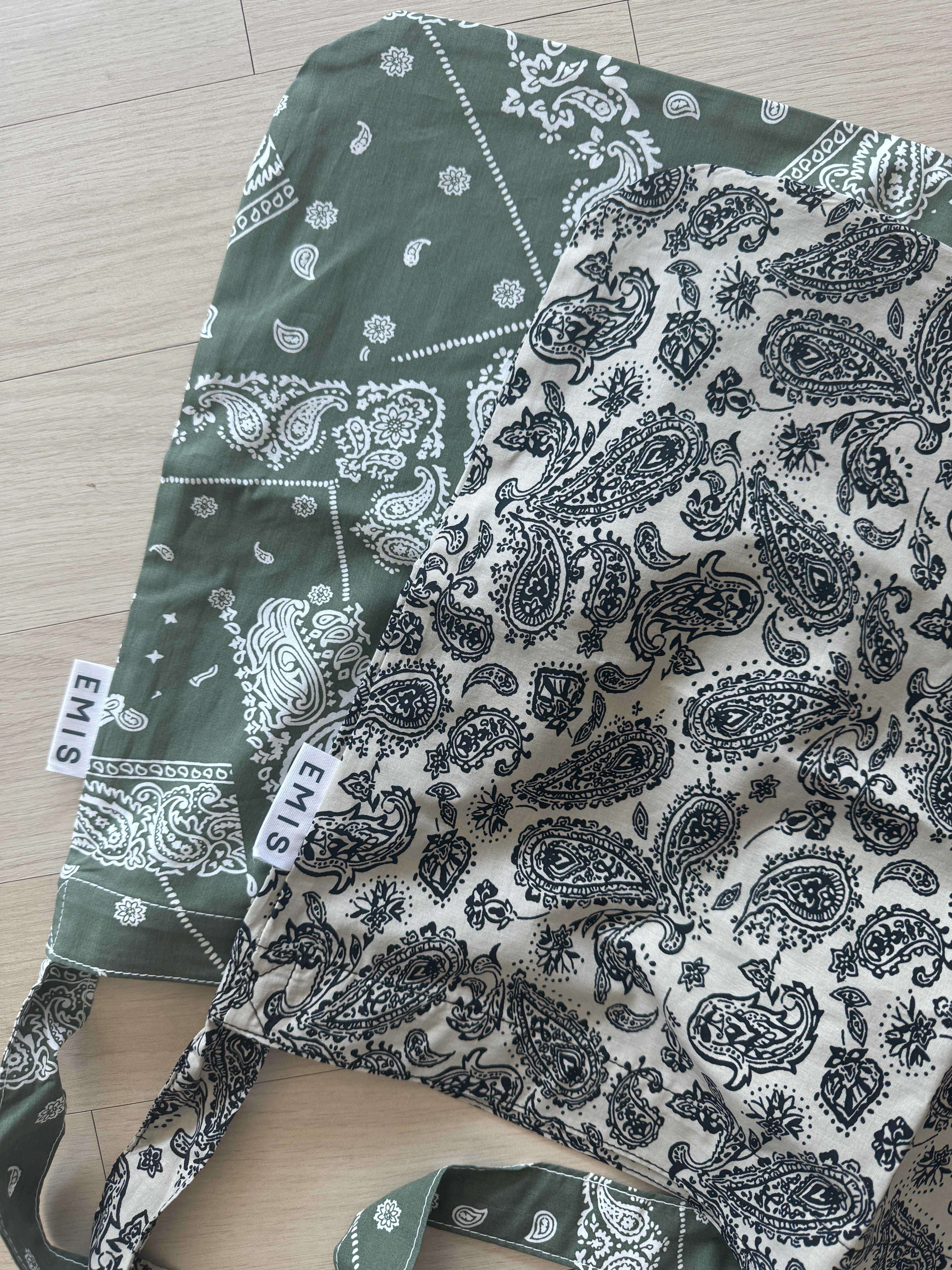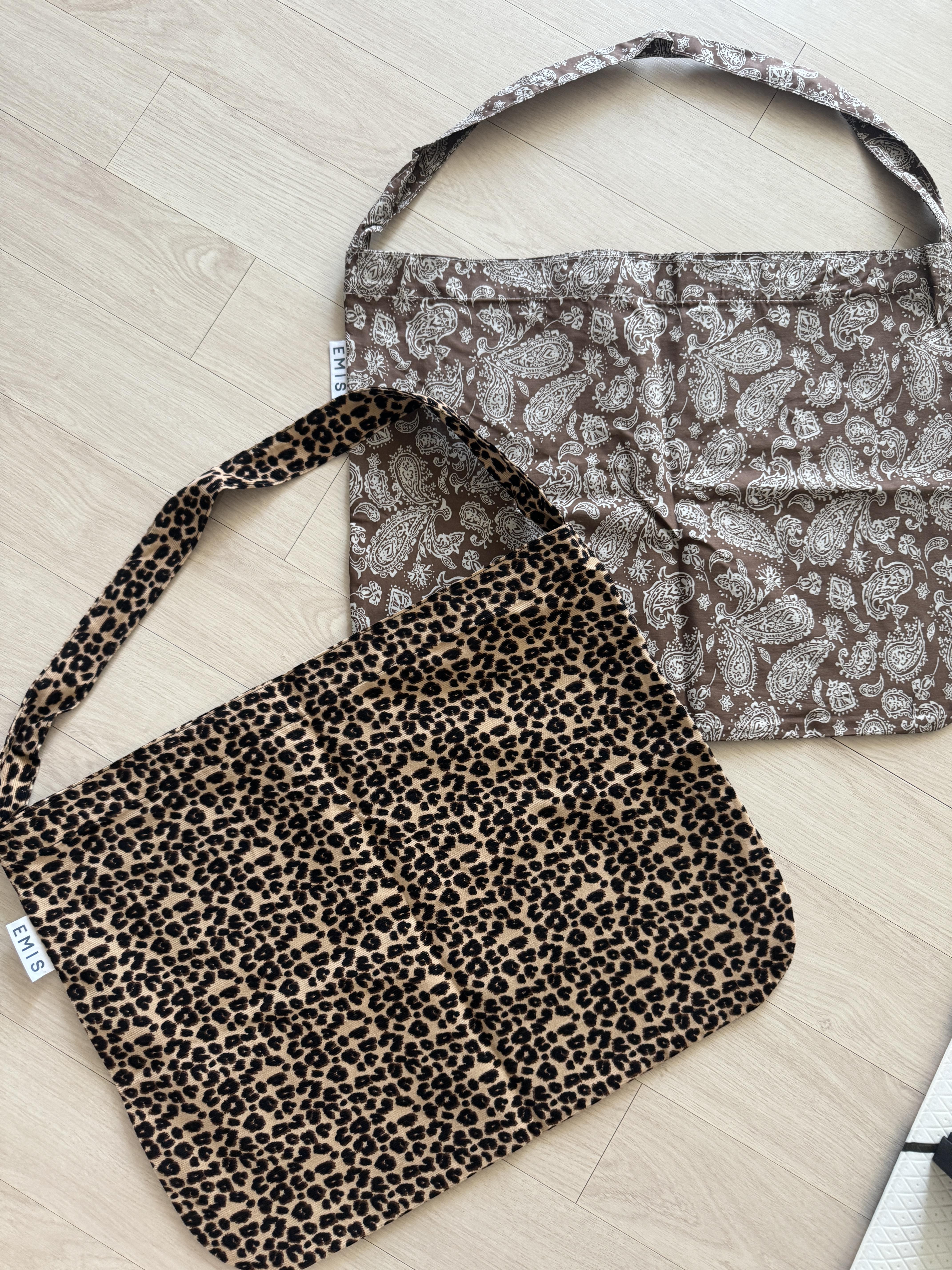 이미스 emis 에코백 레오파드 페이즐리 카키 브라운 베이지