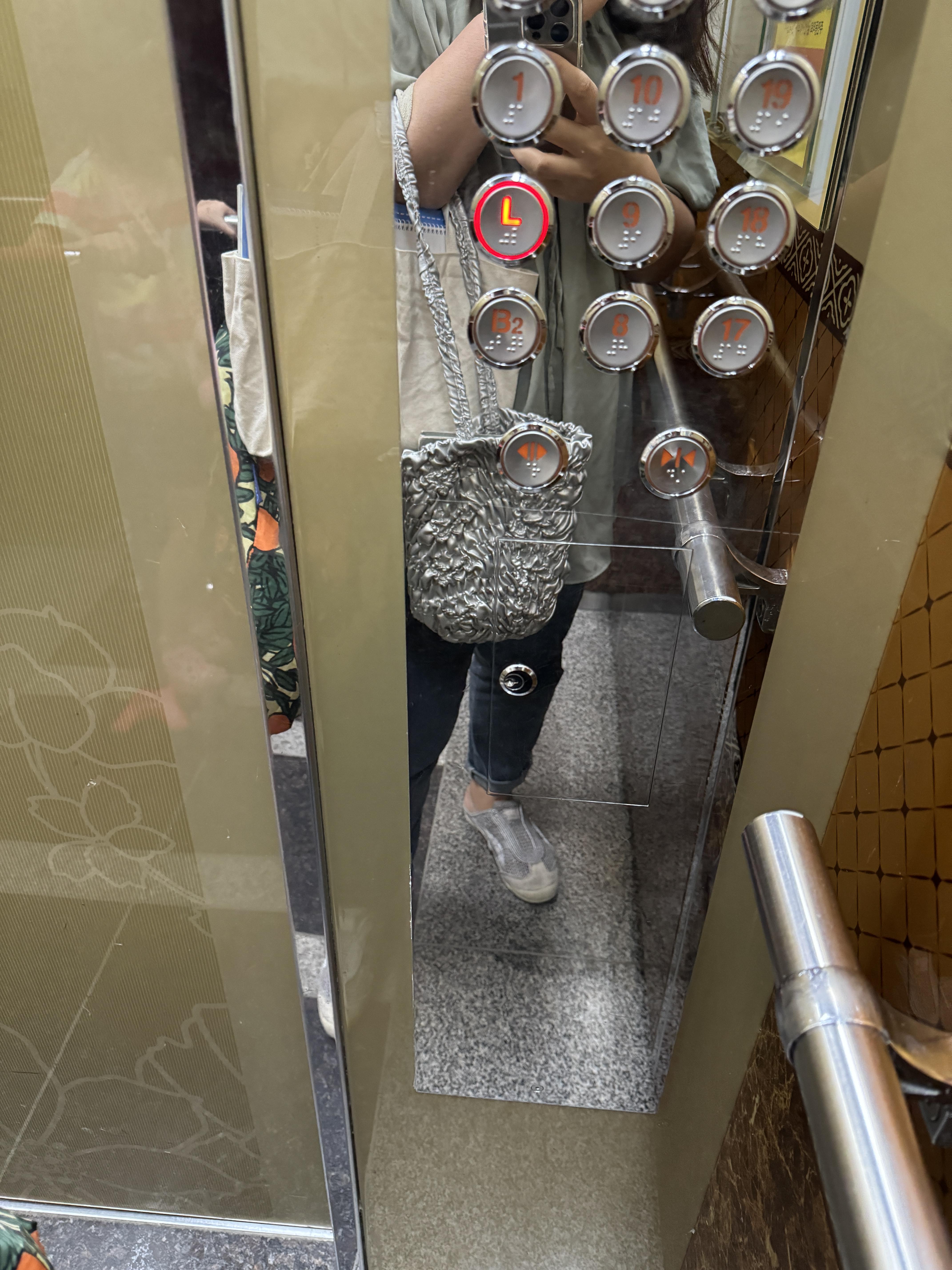 코스모스 링클 펌킨래더백 숄더 실버 사자마자 룰룰루 들고 나가는 나의 착용 샷. 간단한 파우치, 지갑 폰 넣으면 딱인데 나는 거기다 책도 우겨넣고 미어터질때까지 집어넣는다. 보부상 아줌마가 많은짐을 수납할순 없어서 장바구니를 넣어다닌다는 사실. 그러지말자.